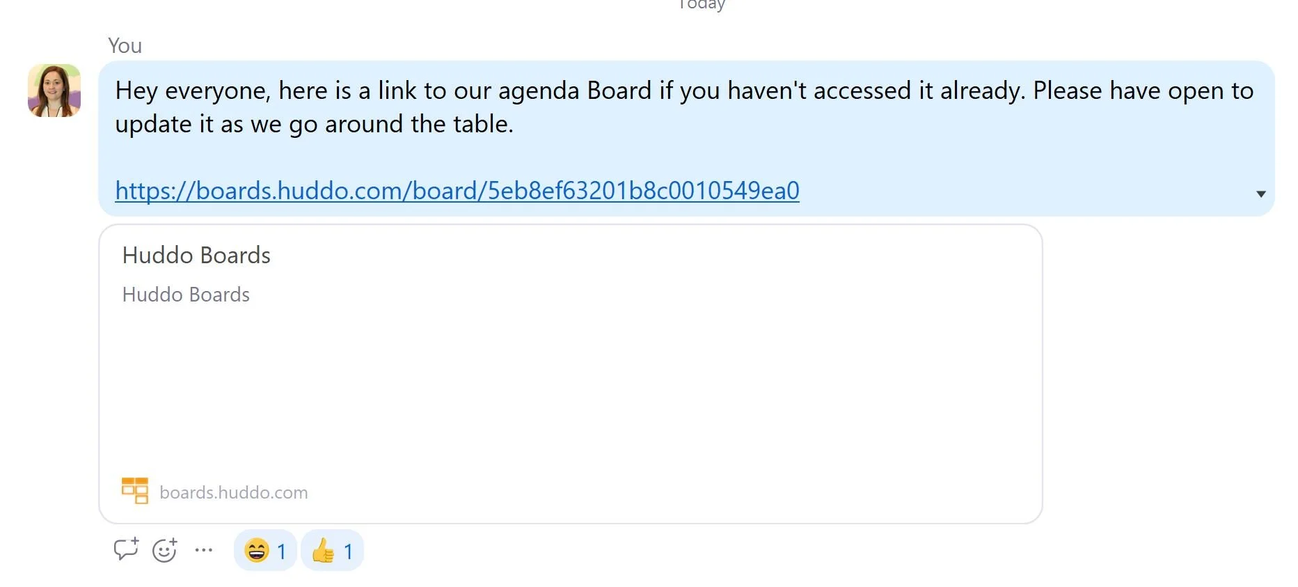 For example, you have a meeting agenda board. In your meeting, you can share the link so people can open the board quickly and in the moment, without searching for it in their MyBoards dashboard or for the email invitation they got when they were added to the board.